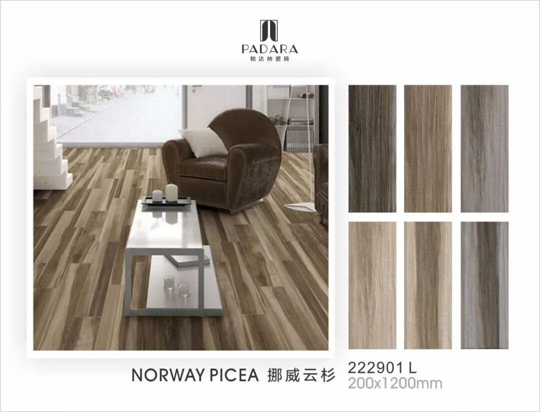 PADARA的木纹砖有600*1200mm、200*1200mm等多种规格,表面增加磨具处理效果,在色彩运用上,大胆地作出了区别于原木色彩的尝试,提供多款选择。