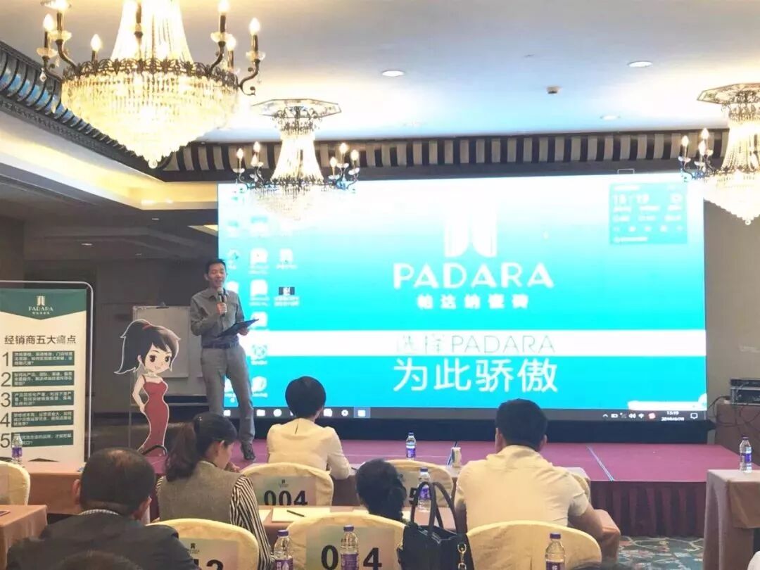 PADARA品牌营销顾问黄启龙阐述了团队打造、店面整改、渠道推广等终端问题,以幽默生动的表达方式,精彩成功的案例分析,赢得了现场所有经销商伙伴的共鸣,引发会后经销商与黄老师进行终端运营问题互动解答!