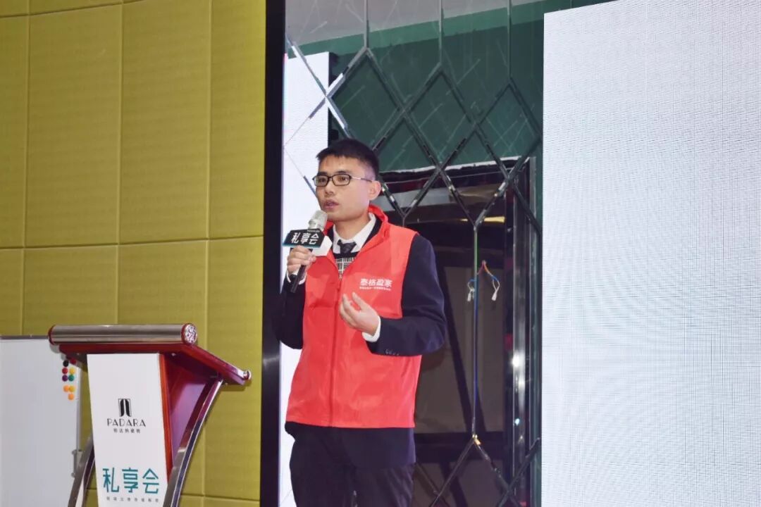 会上,云南运营中心代表谢总围绕“不忘初心,向心而行”的主题,讲述了云南运营中心2018年的发展规划,其中提及到为什么选择PADARA品牌:PADARA高品质、高形象、低价格的战略与极具设计感的产品。并表示与PADARA合作有很大的优势,对未来充满信心。