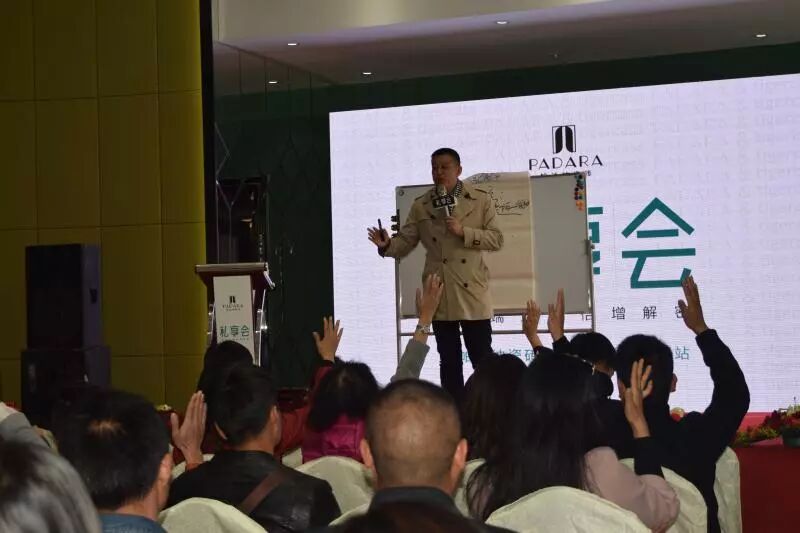 PADARA品牌营销顾问黄启龙先生以“天道、孝道、人道”为题,阐述了团队打造、店面整改、渠道推广等终端问题,幽默生动的表达方式,精彩成功的案例分析,赢得了现场所有经销商伙伴的共鸣,引发会后各经销商与黄老师进行终端运营问题互动解答!